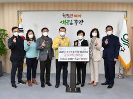 『중랑부동산자산최고경영자과정』 원우들로 구성된 ‘중랑 P-AMP 봉사단(단장 오희순)’이 27일 중랑구 사회복지협의회에 코로나19 극복을 위한 성금 약 520만원을 전달했다.