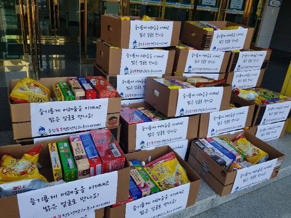 휴원으로 인해 지역아동센터 급식을 이용하는 아동들이 어려움을 해소하고자 한시적으로 부식 꾸러미를 만들어 아동과 청소년(34명)들에게 매주 1회 제공하고 있다.