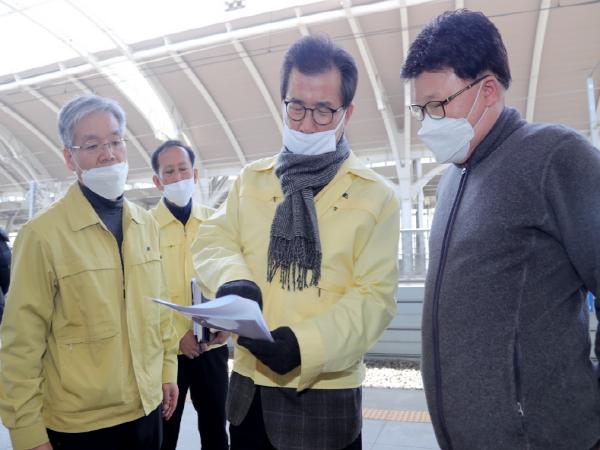 아울러, 이시종 충청북도 지사는 3. 29.(일) KTX오송역을 방문하여 입국자들의 이동경로, 전용 교통 운영 및 입국자 검체 채취를 위한 선별진료소 운영 상황 등을 점검했다.