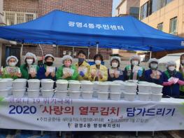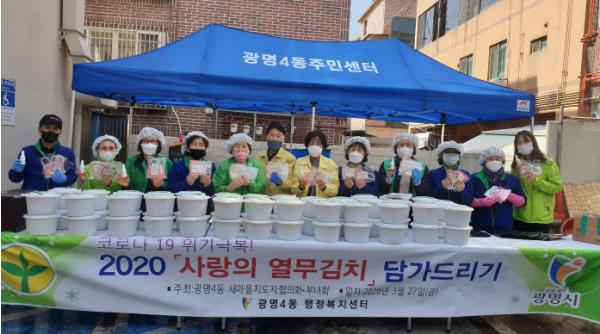 광명시 광명4동 새마을지도자협의회(회장 정안진)·부녀회(회장 윤경희)는 27일, 코로나19로 인한 어려움을 함께 극복하고자 직접 담근 열무김치와 손수 만든 면 마스크를 독거노인 등 관내 취약계층 어르신 60가구에 전달했다.