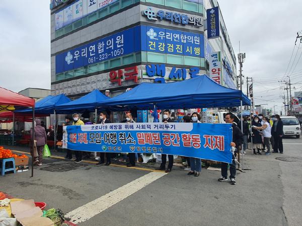 함평군(군수 권한대행 나윤수)은 27일 읍내 주요시가지 일원에서 코로나19 확산 방지를 위한 ‘고강도 사회적 거리두기’ 동참 캠페인을 실시했다.