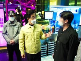 허태정 시장은 둔산동 일대의 주점을 돌아다니며 마스크 착용, 출입자 발열체크, 시설 소독 등 방역지침 준수 여부를 일일이 점검하고, 사회적 거리두기에 적극 동참해 줄 것을 당부했다.