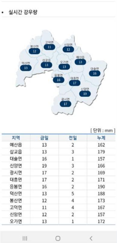 30일 군에 따르면 ‘예산군기상현황’ 앱은 12개 읍·면지역에 강우량 및 적설량을 실시간으로 제공해주는 스마트폰 어플리케이션이다.