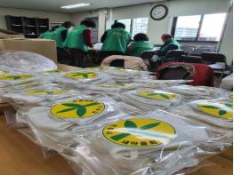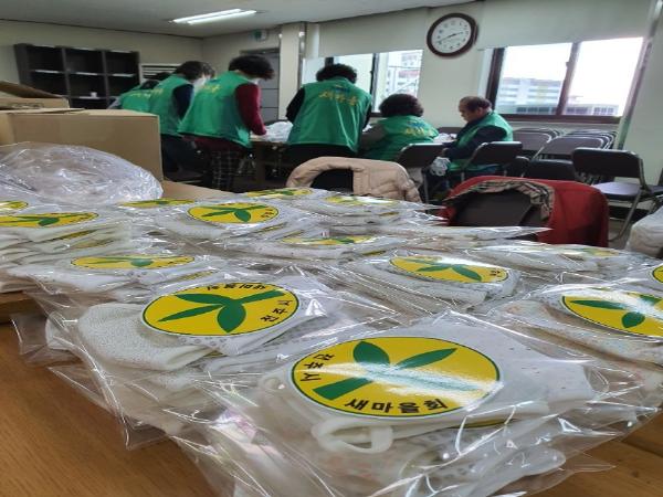 새마을부녀회 회원 50여 명은 면 마스크 제작을 위해 2000여 개의 반제품 면 마스크를 전달해 필터를 삽입한 뒤 제봉해 개별 비닐 포장했다.