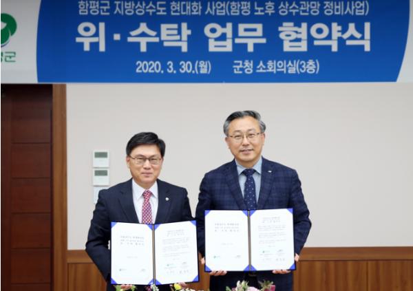 함평군은 30일 군청 소회의실에서 물 전문기관인 환경부 산하 한국수자원공사(K-water)와 지방상수도 현대화사업 위수탁 협약을 체결했다고 밝혔다.