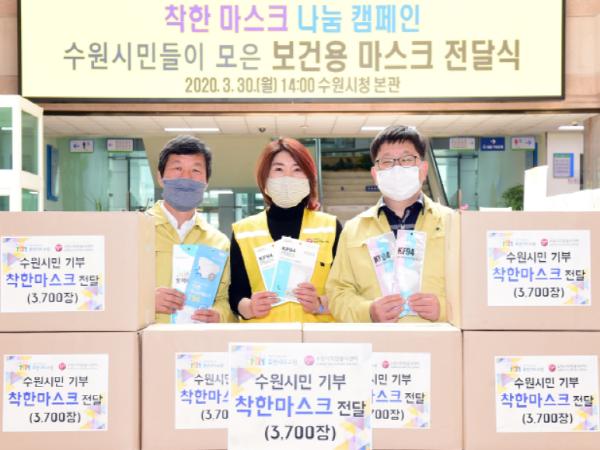 고위험군이나 의료진 등에 양보한 수원시민의 보건용 마스크는 지난 30일 수원시 재난안전상황실에서 1차 전달식을 통해 기부됐다.