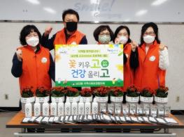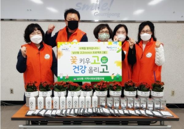 부산 금정구(구청장 정미영) 남산동 지역사회보장협의체(공동 위원장 김영희, 박승기)는 지난 27일 최근 외출이 어려운 관내 취약계층의 코로나 블루(코로나19로 인한 우울감) 극복을 위해 ‘꽃 키우고 건강 올리고’사업을 추진하고, 종합비타민·손세정제·면 마스크·화훼 농가를 돕기 위한 꽃 화분 등을 관내 취약계층 10세대에게 전달했다.