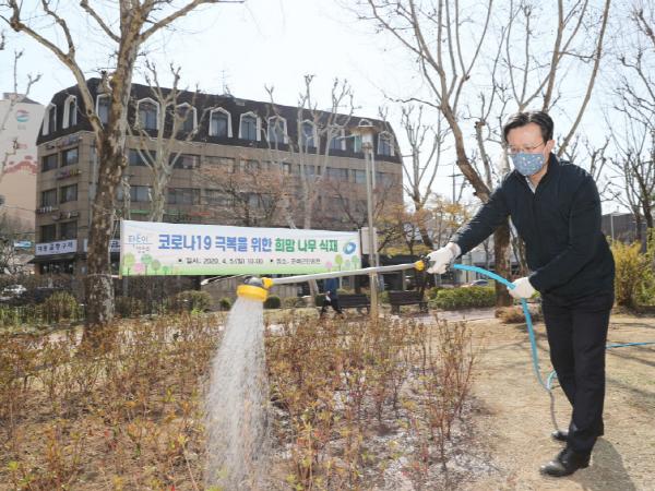 영등포구(구청장 채현일)가 지난 5일 코로나19로 인한 위기를 함께 극복하자는 희망의 뜻을 구민들에게 전달하고자 수목을 식재했다.