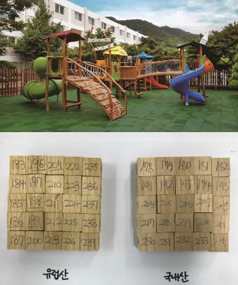지금까지 국산 아까시나무는 「어린이제품안전특별법」 제 17조 3항에 따른「안전인증대상 어린이제품의 안전기준」이 요구하는 내후성 기준에 포함되지 않아 어린이 놀이터 및 어린이 놀이기구를 만드는 데 사용할 수 없었다.