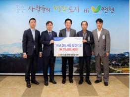 NH농협은행 연천군지부 이재진 지부장은 4월 6일 김광철 연천군수에게 지난해 적립된 총7,868만원의 연천사랑 발전기금을 전달했다.?