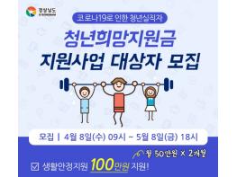 진주시는 코로나19로 해고된 청년의 생계지원을 위한‘청년희망지원사업’대상자 325명을 4월 8일부터 5월 8일까지 온라인 모집한다고 밝혔다.