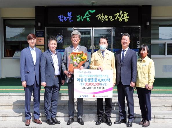 (주)바디와이즈 아시아(대표 김유진)는 코로나19로 어려움을 겪는 이웃을 위해 여성용 위생용품 8,000팩(3천만원 상당)을 장흥군에 기탁했다.