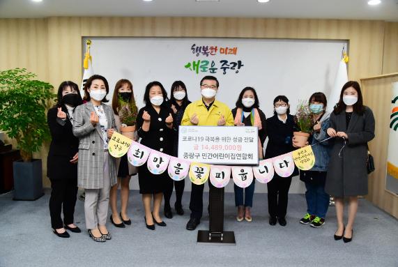전달받은 성금은 중랑구 사회복지협의회에 기탁되어 코로나19 극복을 위한 활동 지원에 사용될 계획이다. 한편, 지역 내 어린이집 223개소는 코로나19로 인해 휴원이 연장된 상태이며 맞벌이 부부 등을 위한 긴급보육을 실시하고 있다.