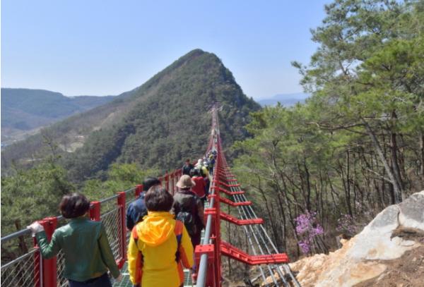 전북 순창군 적성면에 위치한 채계산 출렁다리는 지난 2년간 공사 끝에 지난달 27일 정식 개통했다.
