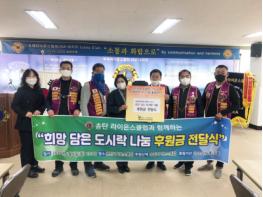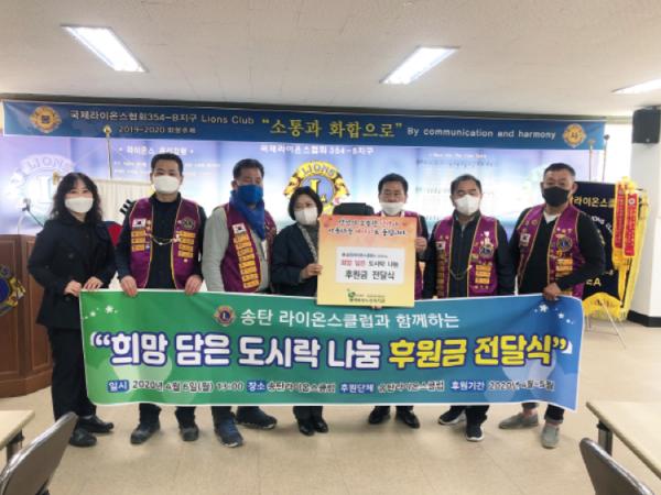 평택시 송탄라이온스클럽(회장 이준수)과 평택북부노인복지관(관장 유영애)은 4월 6일 송탄라이온스클럽 사무실에서 코로나19 감염 취약계층인 독거어르신들을 위한‘희망담은 도시락 나눔’후원금 전달식을 가졌다.