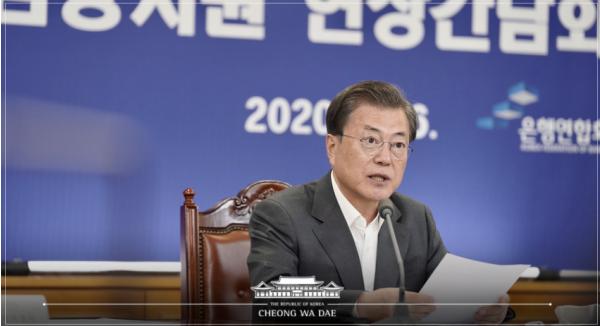 문재인 대통령은 오늘, 은행연합회에서 코로나19 대응 기업?소상공인 긴급 금융지원 현장 간담회를 개최하고 금융권의 협조와 적극적인 역할을 당부했다.