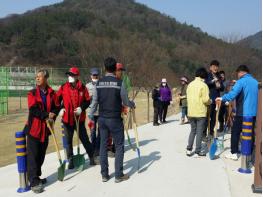 완주군 비봉면 주민자치위원회가 체육공원 주변에 수양홍도화를 식재했다.