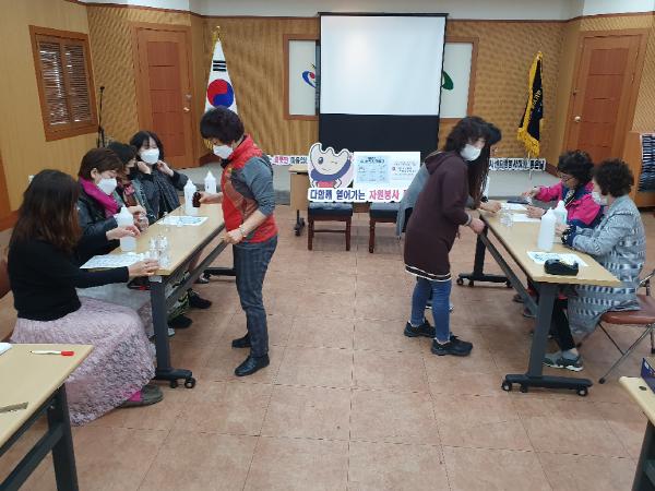휴대용 손 소독제는 4. 6일부터 센터 교육장에서 자원봉사자들이 자율적으로 방문해 수시교육을 통하여 직접 만들어 가져갈 수 있도록 진행했으며,