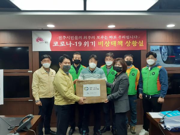 전주지역의 태양광 업체가 코로나19 방역활동에 앞장서고 있는 자율방재단을 위해 마스크를 기부했다.