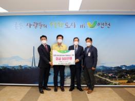 연천군산림조합(조합장 이찬재)은 지난 8일 연천군청(군수 김광철)을 방문하여 관내 코로나19로 어려움을 겪고 있는 어려운 이웃을 위해 써달라며, 성금 500만원을 연천군에 전달하였다.