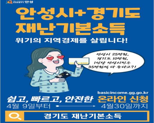 안성시가 모든 시민에게 지급하는 ‘안성시 재난기본소득’ 신청 접수를 4월 9일부터 시작한다고 밝혔다.