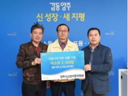 양주시소방자문위원회(회장 서재원)는 지난 8일 양주시청을 방문해 코로나19 확산 차단과 예방을 위해 덴탈마스크 2,000장과 모자형 마스크 100장(570만원 상당)을 기부했다.