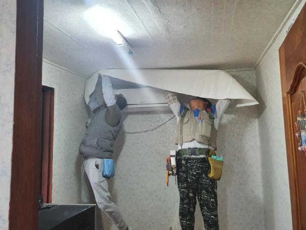 이날 집수리는 신장동 L모씨 가정에서 이른 아침부터 늦은 오후까지 이루어졌으며 실내 벽지, 장판, 주방 싱크대 등을 교체하고, 화장실 개선과 안방 창호를 교체하는 등 오래된 시설과 설비들을 깨끗이 수리하였다.