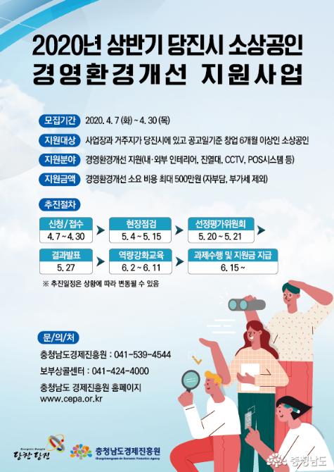 당진시와 충남경제진흥원(원장 오광옥)이 당진시 소상공인을 대상으로 “2020년 당진시 소상공인 경영환경개선 지원사업”을 진행한다.