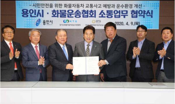 용인시는 9일 시청 시장실에서 경기도화물자동차운송사업협회, 경기도개별화물자동차운송사업협회 등과 화물자동차 운수종사자의 교통질서 의식함양과 운수환경 개선을 위한 업무협약을 체결했다고 밝혔다.