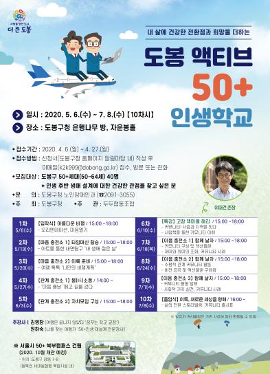 이동진 도봉구청장은 “이번 인생학교 교육이 점차 증가하고 있는 50 세대의 제2의 인생설계에 도움이 되기를 바라며, 교육 이후에도 지역사회와의 연계활동으로 이어져 지역 안에서 가치를 찾고 나눔을 실천할 수 있기를 희망한다.”고 말했다.