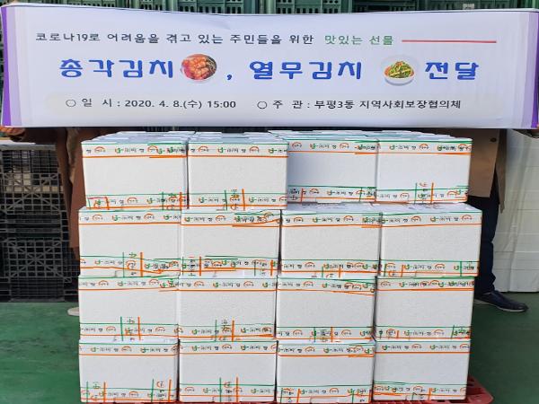 부평구 부평3동 지역사회보장협의체는 최근 지역의 어려운 이웃 125가정에 총각김치와 열무김치를 전달했다.