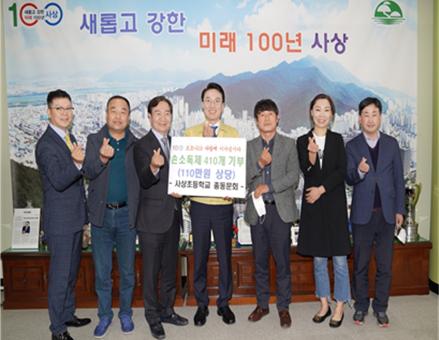 부산 사상구(구청장 김대근)는 지난 8일, 사상초등학교 총동문회(회장 이종협)에서 코로나-19로 어려움을 겪고 있는 지역사회를 위해 사용해 달라며 손소독제 410개를 기탁했다 밝혔다.