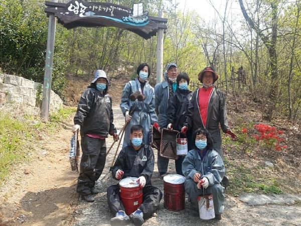 이날 봉사에 나선 주민자치위원들은 등산로 난간과 벤치와 데크 등을 새로 페인트칠 하고, 바닥이 미끄럽지 않도록 보수했다.