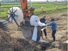 이번에 농가에 보급되는 무굴착 땅속배수 기술은 굴삭기에 땅속배수관 매설기를 장착해 땅을 굴착하지 않고 주행과 동시에 땅속 80㎝ 깊이에 부직포로 감싼 땅속 배수관(물 빠짐을 좋게 하기 위해 지하에 고랑을 파고 묻는 관)을 매설하는 새로운 저비용 땅속배수 기술이다.