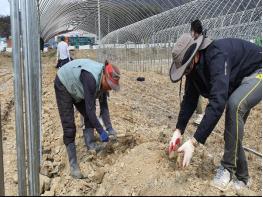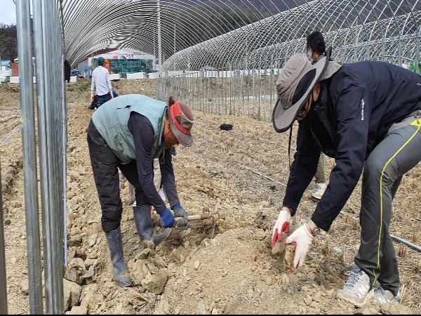 이날 일손봉사에 나선 농정과 공무원들은 농가주의 지도에 따라 하우스 설치와 농지 내 돌 제거 작업 등을 하며 구슬땀을 흘렸다.