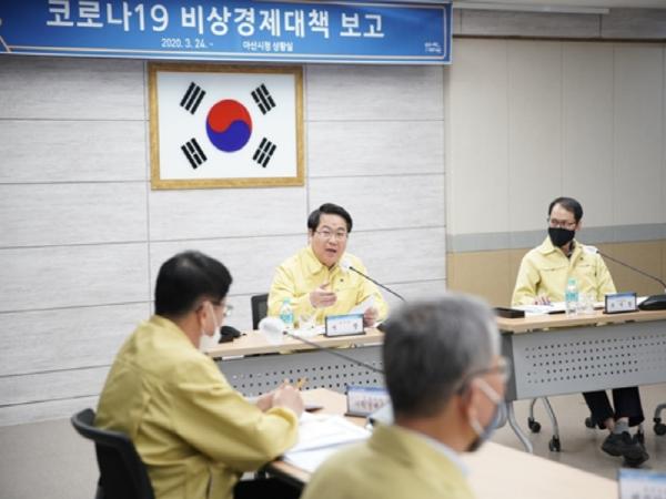 아산시(시장 오세현)는 4월 13일 시청 상황실에서 개최된 제5차 코로나 비상경제 대책회의에서 코로나19 피해 대응 및 지역경제 활성화를 위한 대책을 논의했다.