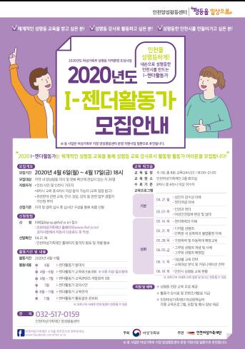 인천여성가족재단(대표이사 원미정)은 4월 6일부터 17일까지 성평등 강사로 활동하고자 하는 인천시민을 대상으로 ‘I-젠더활동가’를 모집한다고 밝혔다.