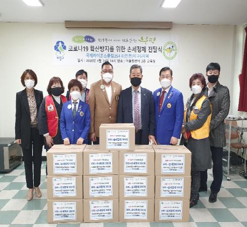 부평구 자원봉사센터는 지난 14일 국제라이온스협회354-F(인천)지구 6지역으로부터 코로나19 확산 방지를 위한 손세정제 300개를 기탁 받았다.