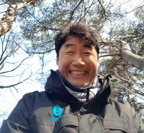“아, 저 지금 집 앞에 있는 산에 올라왔습니다.”