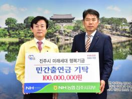 이날 NH농협 진주시지부에서는 청소년들이 다양한 분야에서 자신의 꿈을 펼칠 수 있도록 지원하고, 우수한 인재 발굴과 지역사회 발전을 위해 사용해 달라며 1억 원의 기탁증서를 전달했다.