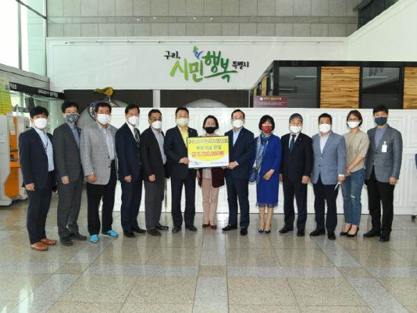 이날 구리시청 복지회의실에서 열린 후원금 전달식에는 안승남 구리시장과 이수원 구리시주민자치협의회장, 박승원 갈매동주민자치위원장, 최기정 동구동주민자치위원장, 홍덕남 인창동주민자치위원장, 지유봉 수택1동 주민자치위원장, 이인규 수택2동 주민자치위원장, 정두호 수택3동 주민자치위원장, 박수미 주민자치협의회 재무부장, 이상희 종합사회복지관장이 참석했으며, 후원금은 코로나 확산방지를 위한 방역물품, 생필품 지원 등에 사용될 수 있도록 구리시 종합사회복지관으로 전달됐다.