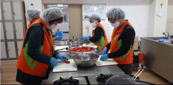 인천 동구 자원봉사센터(센터장 최경희)는 지난 16일 동구여성회관 조리실에서 코로나 19사태로 피해받은 지역 농가와 재난대응에 수고하는 의료진을 위해 수제 딸기청 만들기 활동을 실시했다.