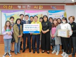 한국부인회 아산시지회(회장 김혜정), 나눔터 봉사단(대표 이은성), 교육공동체협동조합 노리아이(이사장 이명희)는 4월 16일 아산시에 코로나19 극복 기원과 아산시 관내 다문화가정과 저소득층 외국인 자녀들을 위한 오가닉 면 마스크 500장을 전달했다.