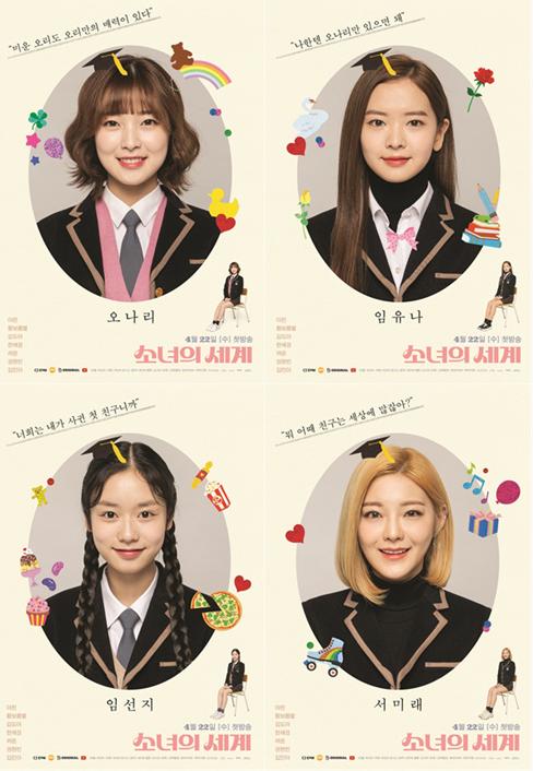 웹툰 ‘소녀의 세계’는 네이버 월요일 1위를 차지했을 뿐만 아니라 시리즈 어플 다운로드 700만건에 달하는 메가 히트 웹툰으로 수많은 소녀들이 드라마화를 오매불망 기다려온 대표적인 웹툰이다. 이미 지난 7일부터 오마이걸 아린(오나리 역)을 시작으로 황보름별(임유나 역), 김도아(임선지 역), 한채경(서미래 역)까지 4인4색 매력이 담긴 캐릭터 포스터가 공개되며 팬들의 심장을 두근거리게 했다.