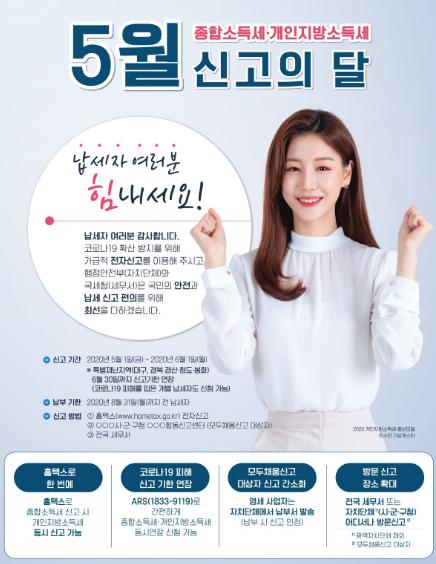 코로나19에 따른 납세자의 경제적 부담을 덜기 위해 개인지방소득세 납부기 한을 6월 1일에서 8월31일까지 3개월 연장하였다.