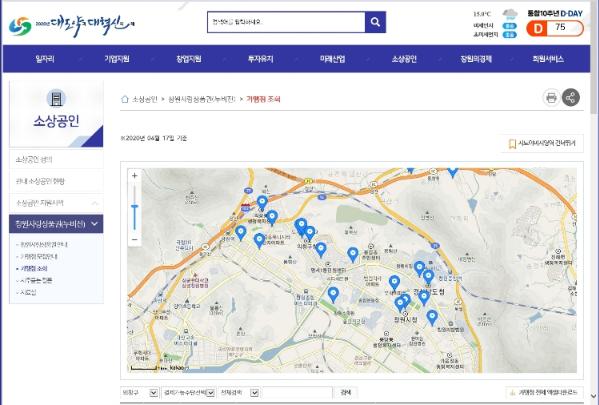 지도기반 누비전 통합검색서비스는 창원시 대표 홈페이지 및 기업경제포털 내 소상공인 메뉴에서 찾아볼 수 있다.