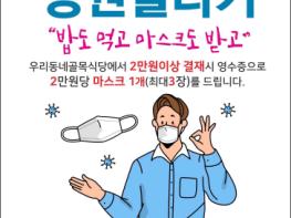 수안·낙민동 소재 일반음식점에서 2만 원 이상 결제를 한 뒤 한국외식업중앙회 동래구지부를 방문하여 영수증을 제시하면 2만원 당 마스크 1장(최대 3장)을 받을 수 있다.