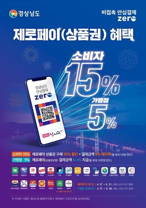 우선 소비자는 경남사랑상품권 등 제로페이상품권 10% 할인구매와 결제금액의 5% 페이백 등으로 최대 15%의 혜택을 누릴 수 있다.
