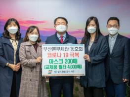 부산본부세관 동호회(신우회 회장 강화구, 꼼지락 회장 최회영)에서는 지난 17일 코로나19 극복을 위한 필터교체용 천 마스크 200장(필터 4,000장)을 부산 서구(구청장 공한수)에 기탁했다. 서구청에서는 기탁받은 마스크를 관내 장애인복지시설에 전달할 계획이다.