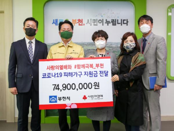 경기사랑의열매는 지난 17일 부천시에 코로나19로 인한 신체적·정서적·경제적 피해가 장기화됨에 따른 위기를 함께 극복하고자 코로나19 피해지원금 7,490만 원을 전달했다.